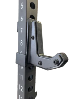 - Attaches to holes in power rack on front and back